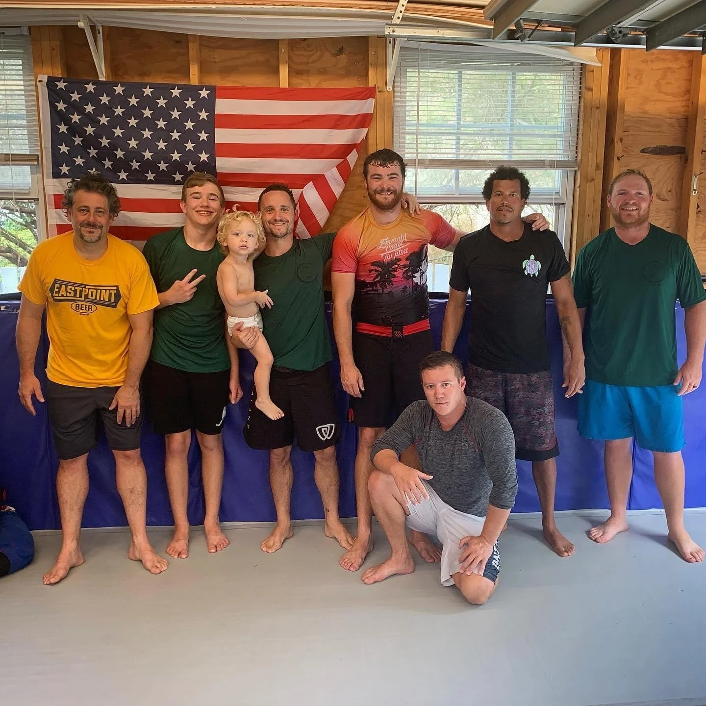 At the time, the closest BJJ schools were in Tallahassee and Panama City Beach. Matt would occasionally frequent some of these schools, but he knew the long drives and time away from family were not sustainable. Thankfully, he met new friends in Franklin county that either had some prior experience, or were willing to learn! So, he tossed a few mats down in his garage and Bayside Brazilian Jiu Jitsu was born. After almost two years in the “brojo,” word spread and classes grew. He knew he had to search for a new location and get the academy out of his back yard. Under the blessing and mentorship of his professor, Vic Rosati, Matt opened Bayside BJJ’s first public location on Island Drive. In less than a year the student volume grew too large for this location and in November of 2022 Bayside moved to 312 Highway 98 Eastpoint Florida. This location has over 1,100 sqft of mat space, a small weight training area, and room to grow!
